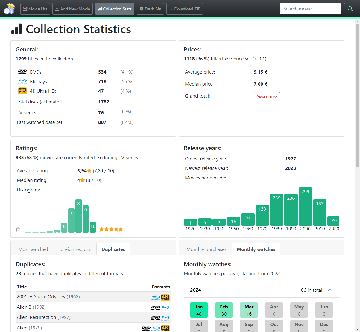 Ever since I resumed my movie collecting hobby, I've been occasionally improving the Movie collection -app I made. The movie collection itself has also grown considerably, perhaps worryingly so... 😅 Read on to find out more!